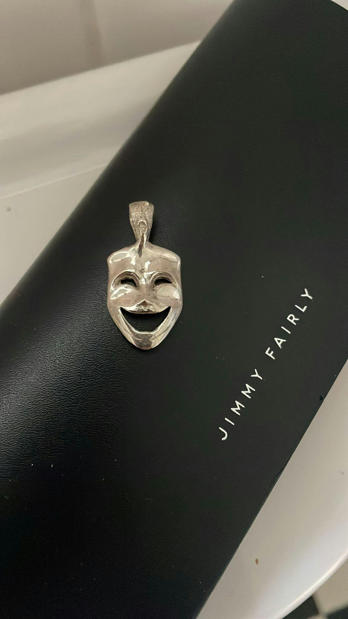 A fully handmade Comedy Tragedy Mask pendant in solid silver 925.